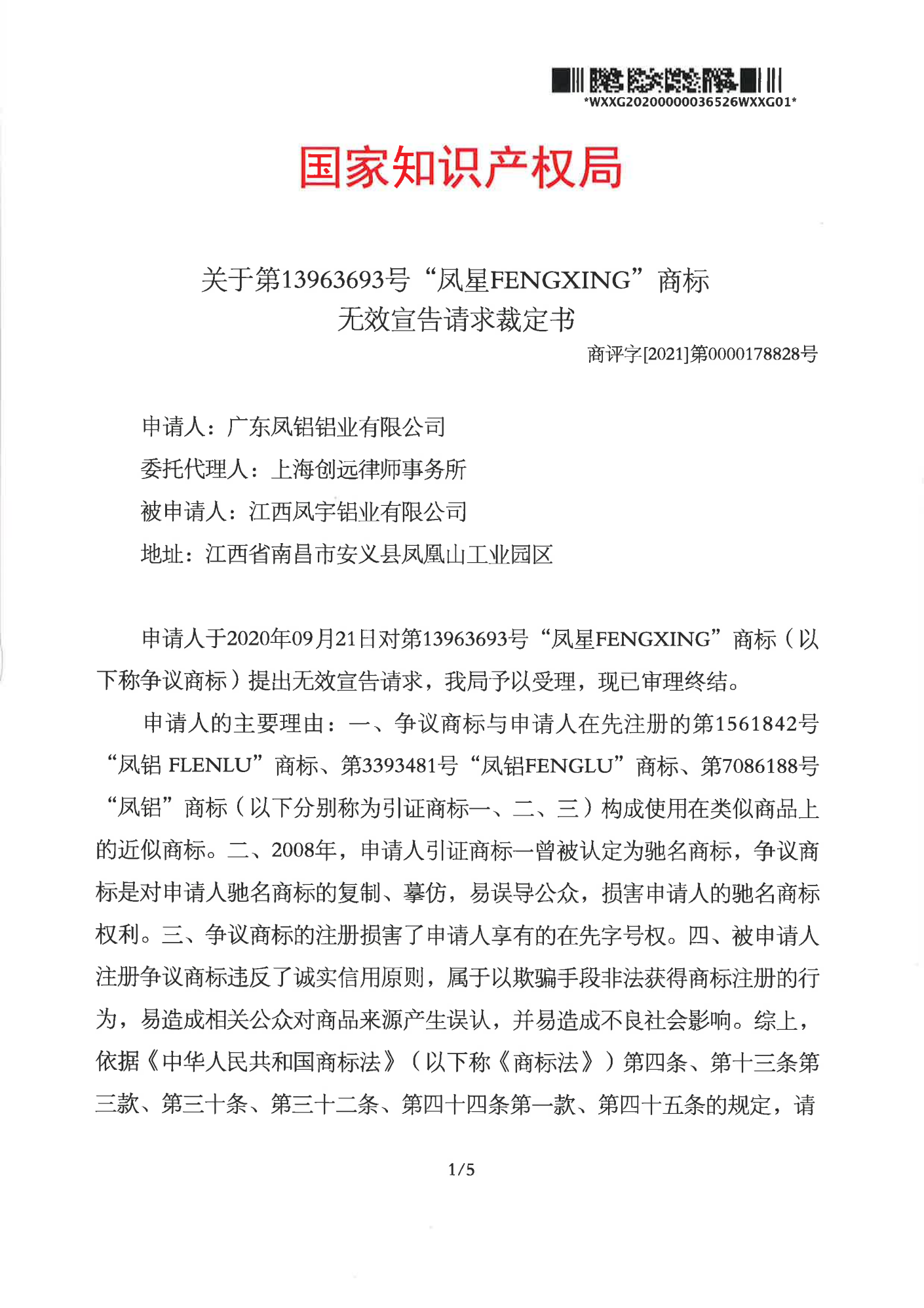 鞍山辉知队 | 国家知识产权局:“凤星”商标无效